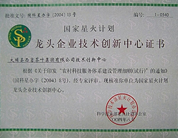 Leading Enterprise Technological Innovation Center Certificate